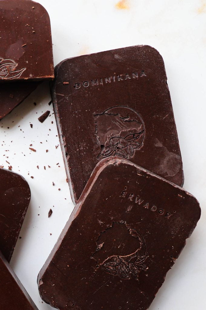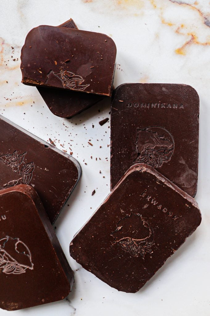 2. Crush the ceremonial cacao paste and put it in a blender.