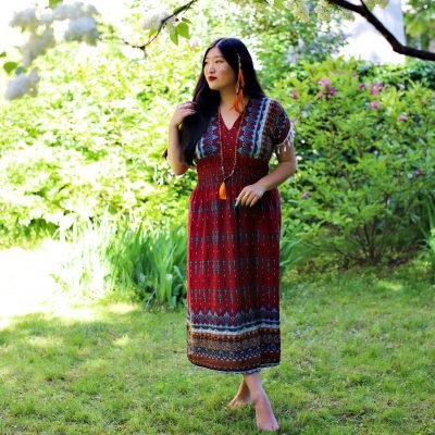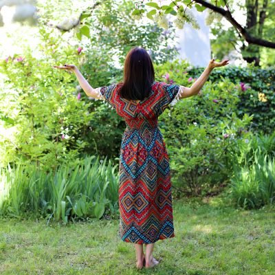 309.99 złOriginal price was: 309.99 zł.249.99 złCurrent price is: 249.99 zł.You know the feeling when you see a piece of clothing for the first time and you know it has been sewn especially for you? I did when I saw this dress. We've been inseparable ever since, with only more patterns and colors arriving in my closet. A beautiful neckline, emphasized (but not restrained) waist and a colorful pattern that optically builds an hourglass silhouette. Now I want you to meet her too! This model was entirely created in Thailand and perfectly fits the atmosphere of this unusual place on earth. It will bring exotic ethno to your closet and you will feel like a real exotic Goddess!