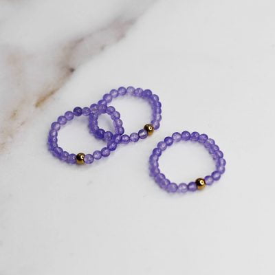 - The ring also features gold-plated stainless steel beads.