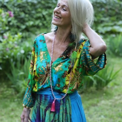 169.99 złCzy istnieje coś lepszego niż świadomość, że coś, co do Ciebie trafiło zostało stworzone z miłością, w atmosferze szacunku i kobiecej mocy? Takie właśnie są nasze topy ręcznie szyte i barwione w Tajlandii. Wygodne, kolorowe i zachwycające niepowtarzalnym batikowym nadrukiem. Wiązanie pod biustem sprawi, że będziesz wyglądała niesłychanie kobieco!Uwierz mi, że szybko stanie się jedną z ulubionych rzeczy w Twojej szafie! Materiał – 100% oddychający, naturalny rayon.’