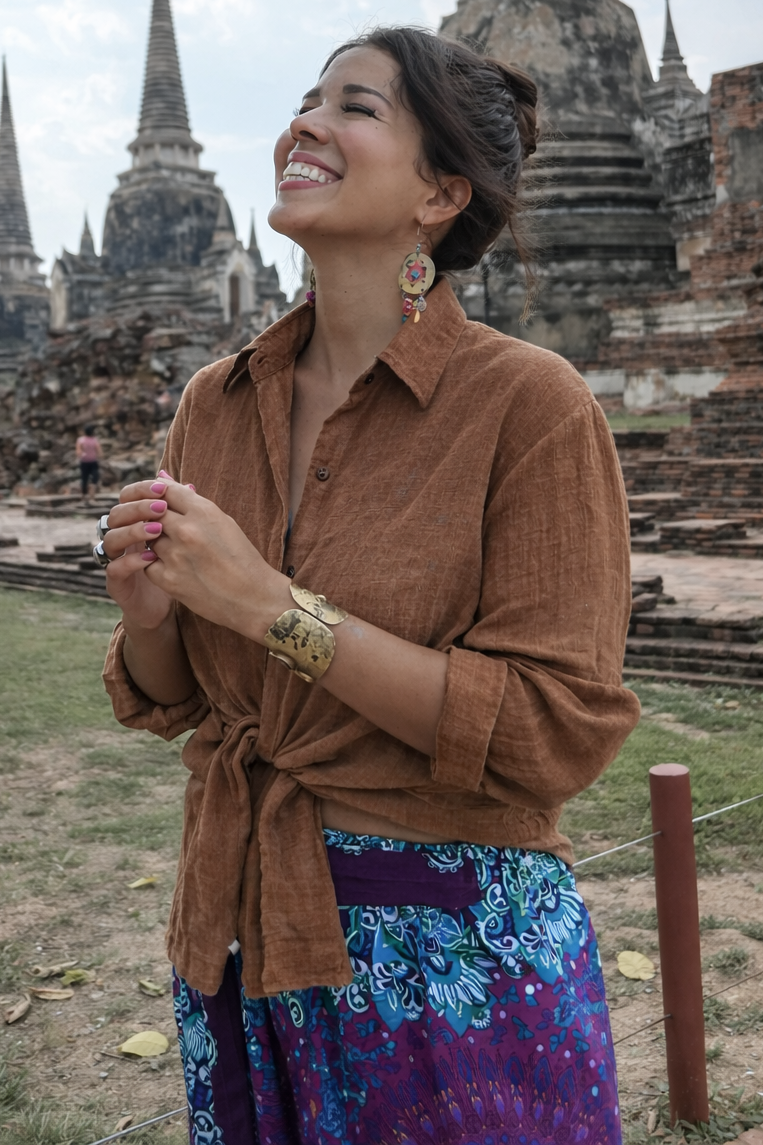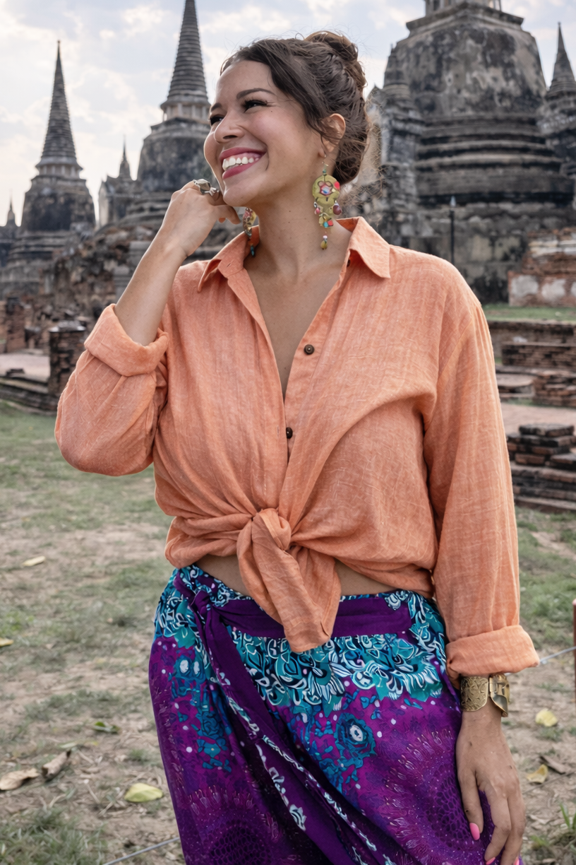 219.99 złPierwotna cena wynosiła: 219.99 zł.119.99 złAktualna cena wynosi: 119.99 zł.Te koszule przywiozłam prosto z Tajlandii. Lekkie, półprzezroczyste, uszyte w 100% z naturalnej bawełny – idealne na upały i gorące dni. Czy może być coś wygodniejszego od lekkiej, przewiewnej i niekrępującej ruchów koszuli o komfortowym, szerokim kroju?Możesz zarzucić je na top, kostium kąpielowy albo nosić solo na co dzień. Oddychające, miękkie, swobodne – dokładnie takie, jakie powinny być letnie rzeczy 🌿