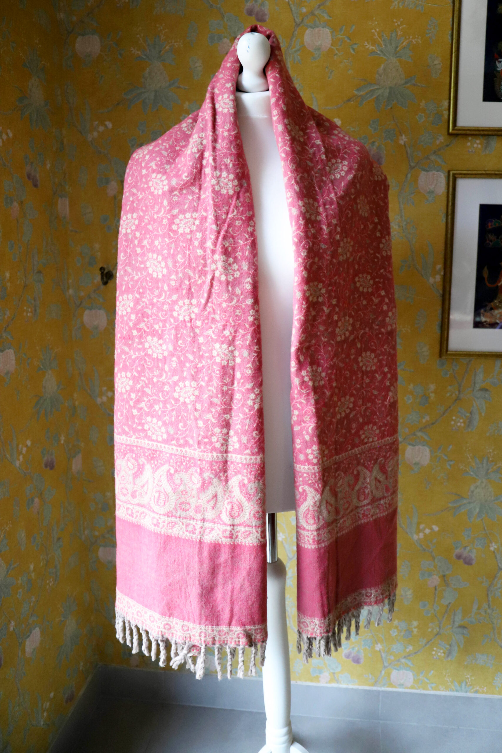Dwustronny szal tybetański PASTEL RASPBERRY & BEIGE
