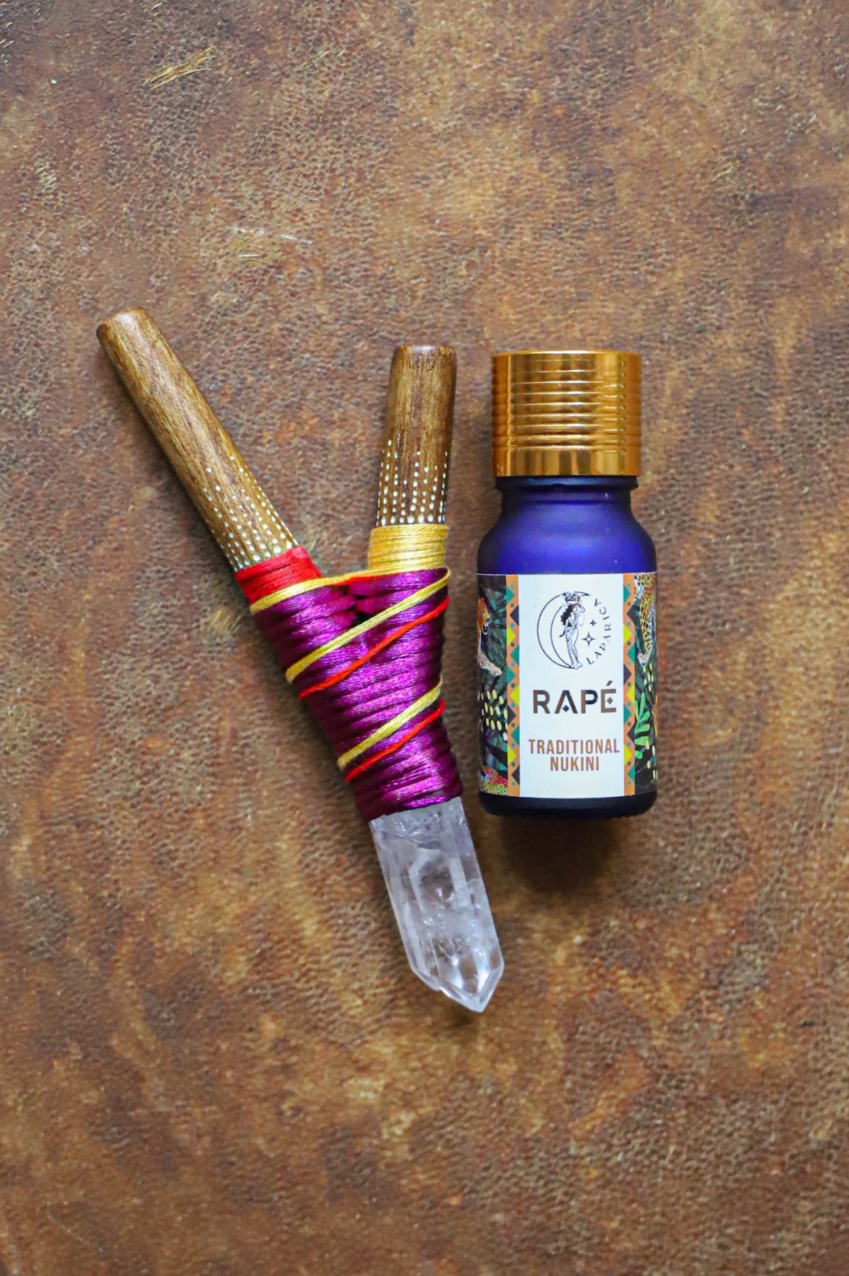 Nasze ręcznie przygotowywane i malowane kuripe to specjalne tutki, które służą samoaplikacji medycyny rapé, czyli świętej tabaki, używanej przez szamanów z regionu Amazonii. Rurki mają kształt litery V – jeden koniec wkłada się do nozdrza, a drugim wdmuchuje się porcję medycyny. Rytuał samopodania rape należy zaczynać od lewej dziurki w nosie (symbolizującej śmierć, pożegnanie tego co nie służy), następnie aplikować tabakę przez prawą dziurkę, symbolizującą odrodzenie i przyjęcie tego co powoduje, że wzrastasz.